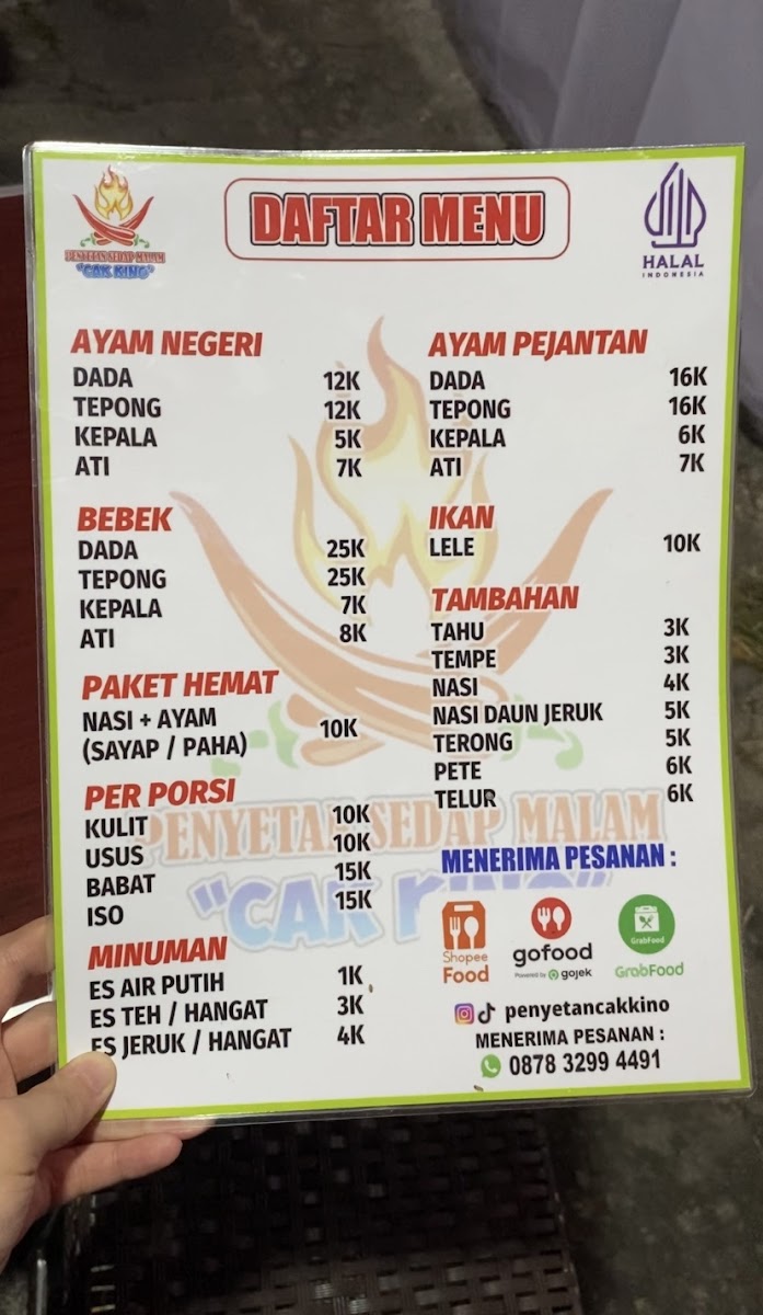 Penyetan Cak Kino Simongan is a vibrant culinary spot located in Semarang, offering a rich variety of traditional Indonesian smashed (penyetan) dishes. The menu captivates with options like ayam (chicken), bebek (duck), ikan (fish), and sapi (beef), each served with signature sambals that range from fiery bawang to earthy terasi and zesty lamongan. A true highlight is the jukut goreng, a crispy vegetable side that customers can enjoy with unlimited refills, perfectly complementing the bold flavors.
